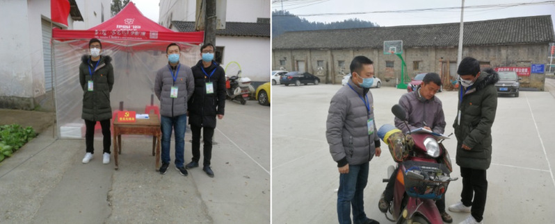 自疫情发生后,工作队根据县镇两级党委政府的工作安排及交通管制要求暂未返村,立即通过微信群、电话等方式与村干部研究部署王村疫情防控工作。工作队协助王村村两委设立了一个临时党支部,共设置8个卡点,挂出8面党旗,设置8个党员先锋岗,每天安排24小时8位党员轮流值勤的方式进行村级疫情防控,对进出王村的人员进行严格把控,筑起王村疫情防控堡垒,工作队成员还自掏腰包捐赠1600元给当地,用于购买口罩、酒精等防疫物资。
