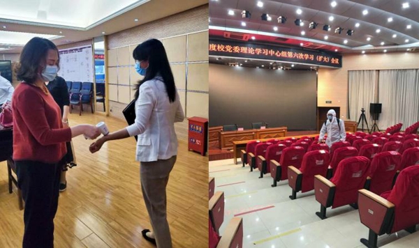据悉,本次学习会议特设学术报告厅与多功能厅两个会场,严格遵守疫情防控纪律要求,提前安排公共卫生人员为会场消毒,要求全体列席人员佩戴口罩,入场之前做好测体温、刷卡、消毒等工作,保持安全距离,有序排队入座,充分贯彻落实了坚持防疫与发展两手抓、两手硬的重要要求,进一步彰显了教育信息化支撑引领教育现代化发展的优势。(撰稿人:罗楚颖 责任编辑:张睿)