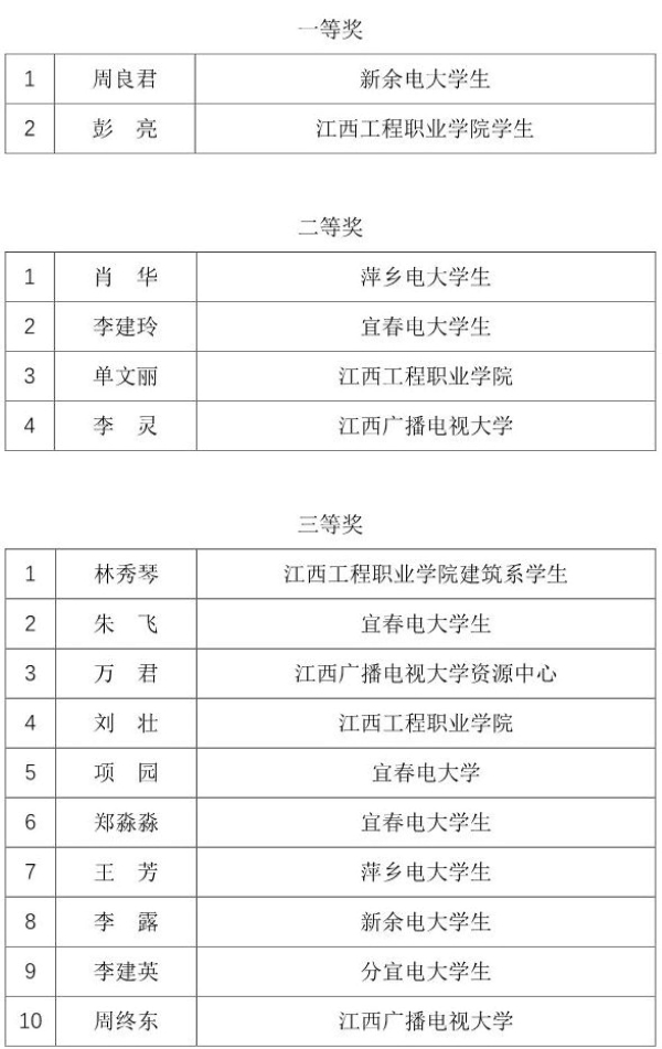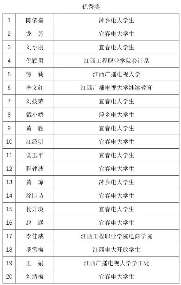 其中,“21天与名师相约春天打卡活动”历时21天,要求21天连续不间断打卡听名师讲座,目的是通过每天打卡记录,使参与者养成每天阅读的好习惯。此次读书月活动得到了全省电大系统师生的热烈响应和好评,参与人数达601人,总打卡人次达7395人次,平均每天参与打卡人数有352人次打卡。截止活动结束,有36名读者分别获得一等奖、二等奖、三等奖及优秀奖,获奖者将会获得不同的精美礼品一份。经过核对确认,获奖名单如下:
