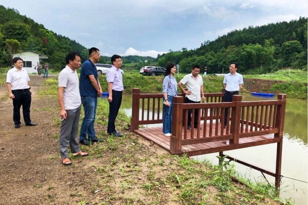 随后,朱爱莹一行参观了上洛村水产养殖基地及山水休闲农庄。
