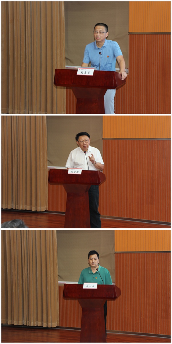 两个小组召集人依次上台,分别围绕“十四五”发展规划、职业教育改革和高职扩招、开放教育与高职教育融合发展、接受红色教育的感受等方面作交流汇报。