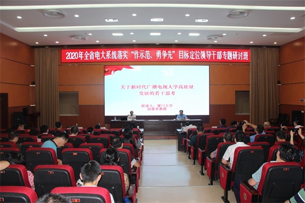 根据2020年全省电大系统落实“作示范、勇争先”目标定位领导干部专题研讨班暨全省广播电视大学工作会安排,8月27日晚,厦门大学教育研究院院长、教授别敦荣应邀来赣,为全省电大系统领导干部作题为《关于新时代广播电视大学高质量发展的若干思考》专题学习报告。讲座由江西广播电视大学副校长刘平主持。