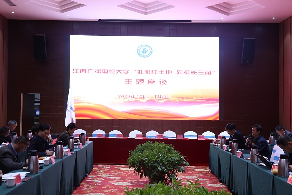 为深入贯彻落实习近平总书记视察江西重要讲话精神,贯彻落实开放发展理念,服务江西内陆开放型经济试验区建设,10月23日下午,在华东地区开放大学(广播电视大学)联盟理事会2020年会议期间,江西广播电视大学召开“扎根红土地,对接长三角,办好开云在线登录入口(China)官方网站,服务江西内陆开放型经济试验区建设”主题座谈会。江西广播电视大学党委书记易小明、华东地区其它10所广播电视大学(开放大学)领导、专家共20余人出席。会议由江西广播电视大学党委副书记、校长黄平槐主持。