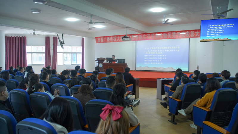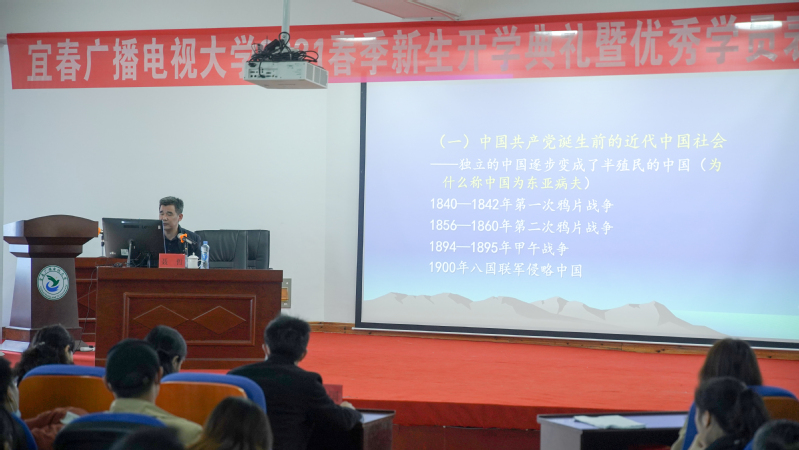 4月10号上午,宜春广播电视大学2021年春季学期开学典礼在学术报告厅隆重举行。学校特邀中共宜春市委党校副校长、副教授聂哲以“历史和人民为什么选择中国共产党”为题为广大师生作党史教育学习专题辅导报告,开启新学期党史教育第一课。报告会由校党委委员、副校长刘蓓洁主持。全体教职工及200余名新老生代表现场聆听授课。