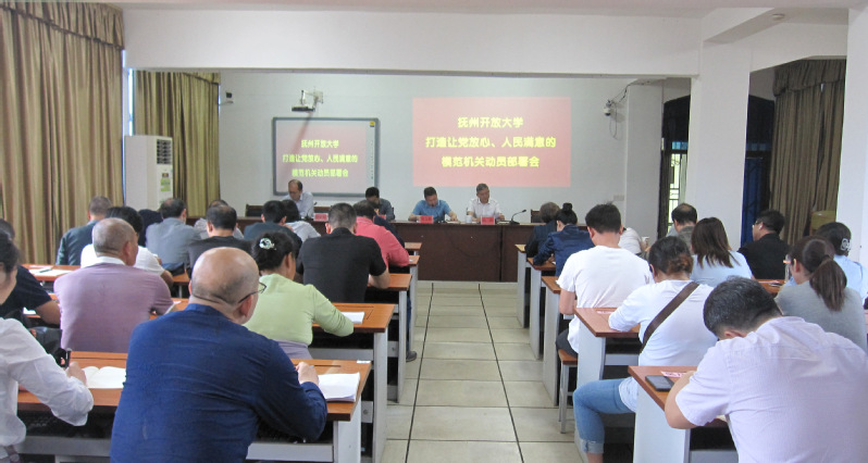 4月26日上午,抚州开放大学召开打造让党放心、人民满意的模范机关动员部署会,校党委副书记、校长傅长岭主持会议并作动员讲话,班子成员出席会议,全校教职工参加会议。