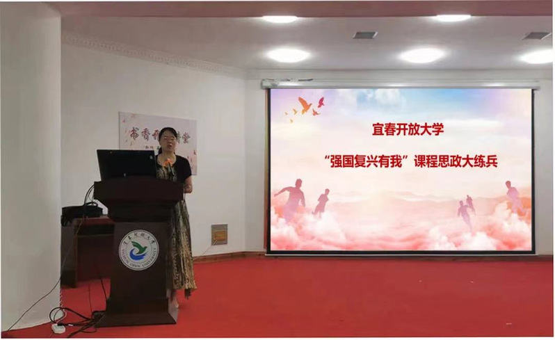 为加强课程思政建设,提升教职工课程思政教学能力,6月16日,宜春开放大学开展以“强国复兴有我”为主题的课程思政大练兵活动。校党委副书记、校长金文玲,副校长李军,校党委委员、副校长彭文辉,副县级干部刘蓓洁、陈曦雯担任本次活动评委,全校教职工到场观摩。副校长李军主持本次活动。