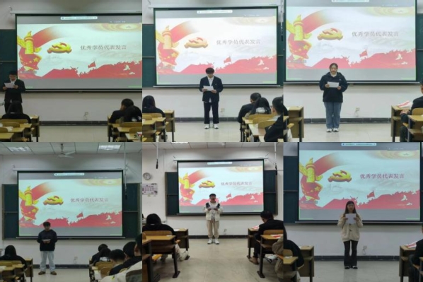 典礼伊始,来自各个专业学院的6位优秀学员分别从此次党课培训的理论收获、思想感悟以及后续努力方向先后作了发言,表示要端正入党动机,树立正确的人生观、世界观和价值观,发挥模范带头作用,争取早日入党,成为一名合格的党员。