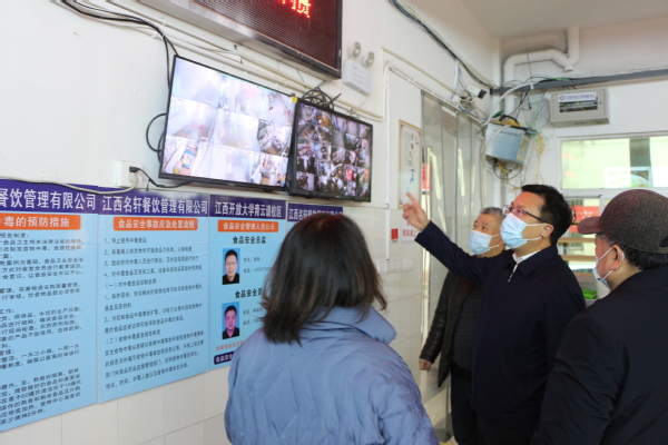 黄平槐一行通过实地查看、调看监控等方式,重点检查了食堂后厨的烹饪操作区、物资存储区、餐具清洗消毒区等食品安全重点领域,“校园食品安全事关学生的身体健康和生命安全,是安全稳定工作的重中之重。”他强调,要严格校园食堂管理,本着“以师生为本”的服务宗旨,建立健全食品安全管理制度,压紧压实安全主体责任,用好“互联网+明厨亮灶”监管平台,筑牢校园食品安全防线。要常态开展自查自纠,积极配合上级工作要求,搭建全链条监管机制,严格落实“日管控、周排查、月调度”工作制度,加大对食堂生产经营者的宣传教育与监督考核,全面深入排查各类安全风险隐患。要强化风险隐患排查整治,认真分析校园食品安全各类风险点,逐条落实食品安全问题整改措施,对违规操作或未落实职责的工作人员严肃问责,确保学校食品安全监督管理工作不留空白、不留死角,打好防范风险“主动仗”,切实保障师生“舌尖上的安全”。