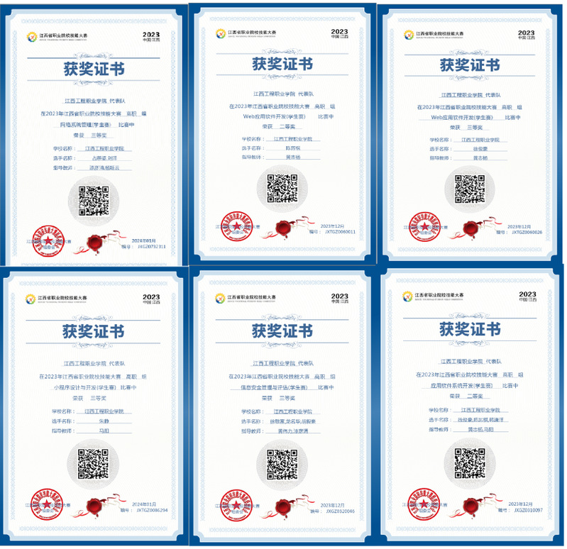 2023年江西省职业院校技能大赛于2023年11月17日至2024年1月26日在全省85所院校成功举办。此次大赛共开赛179个赛项(中职组74个,高职组105个),共4485支队伍(中职2223支,高职2262支),逾9800名选手参赛。我校智能技术学院师生在本次大赛中表现优异,斩获二等奖2项、三等奖4项。