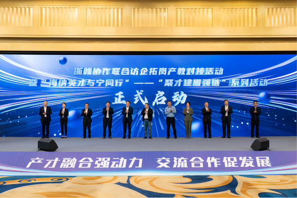 在启动仪式上,浙江省人力社保厅二级巡视员厉进,江西省教育评估监测研究院党委书记刘静俭,嘉兴市副市长邢海华,嘉兴市人力社保局党委书记、局长杨克建等领导到场并讲话。来自嘉兴海宁市近80家重点行业龙头企业、近40家人力资源服务机构,浙江省20余家区域性产业学院(试点),人力资源赋能机构、企业,与38家江西高校代表进行了对接洽谈。
