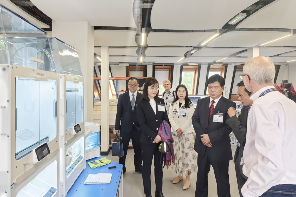在英国开放大学访问期间,贺瑞虎与该校副校长Kevin Shakesheff教授进行了深入交流。重点围绕开放教育教学质量提升、教学支持服务、师资队伍建设、课程设计以及教师赴英培训等事宜进行充分商讨,双方就进一步深化交流合作、推动两校关系迈上新台阶达成共识,贺瑞虎代表学校签署了《开云在线登录入口(China)官方网站与英国开放大学合作谅解备忘录》。交流结束后,学校代表团受邀参观了该校远程教育实训中心OPENSTEAM实验室。