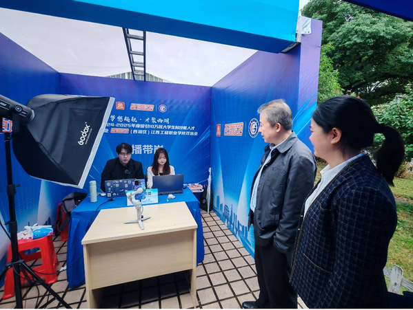 为解决部分在外实践毕业生不能来现场的问题,学校打造‘直播+就业’新模式,搭建双向选择的供需“云”平台。数字经济学院的学生化身主播,与外地毕业生们实时互动,从工作地点到岗位要求,从福利待遇到职业发展,“带岗主播”一一解答,向毕业生推荐了150余个岗位,广受学生好评。