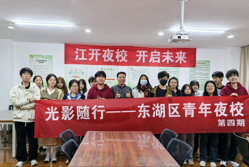 为满足青年朋友在学习、工作及日常生活中的实际需求与多元兴趣,11月21日,由江开夜校与共青团东湖区委携手打造的“光影随行”公益课程在我校顺利举办。课程由江开夜校手机摄影课老师主讲。