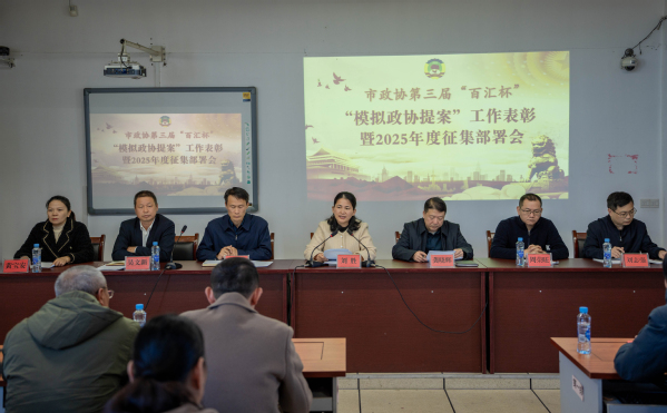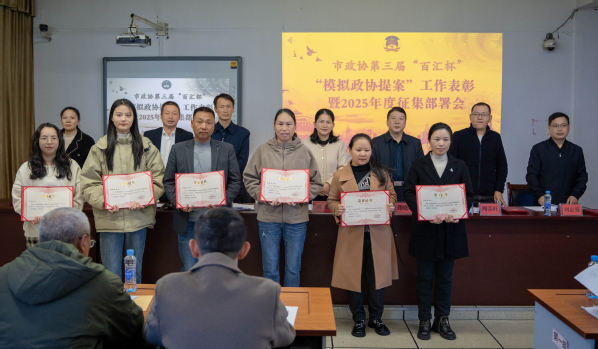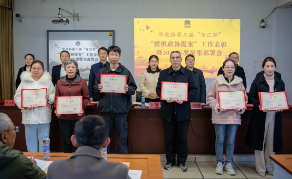 杨利文宣读了《关于市政协第三届“百汇杯”“模拟政协提案”获奖情况的表彰通报》,进行了现场颁奖,获奖代表作了发言。吴文新宣读了《关于做好2025年度“模拟政协提案”征集工作的通知》。