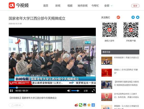3月15日,国家老年大学江西分部授牌仪式在江西老年大学举行。副省长孙洪山、江西老年大学校长赵力平出席。