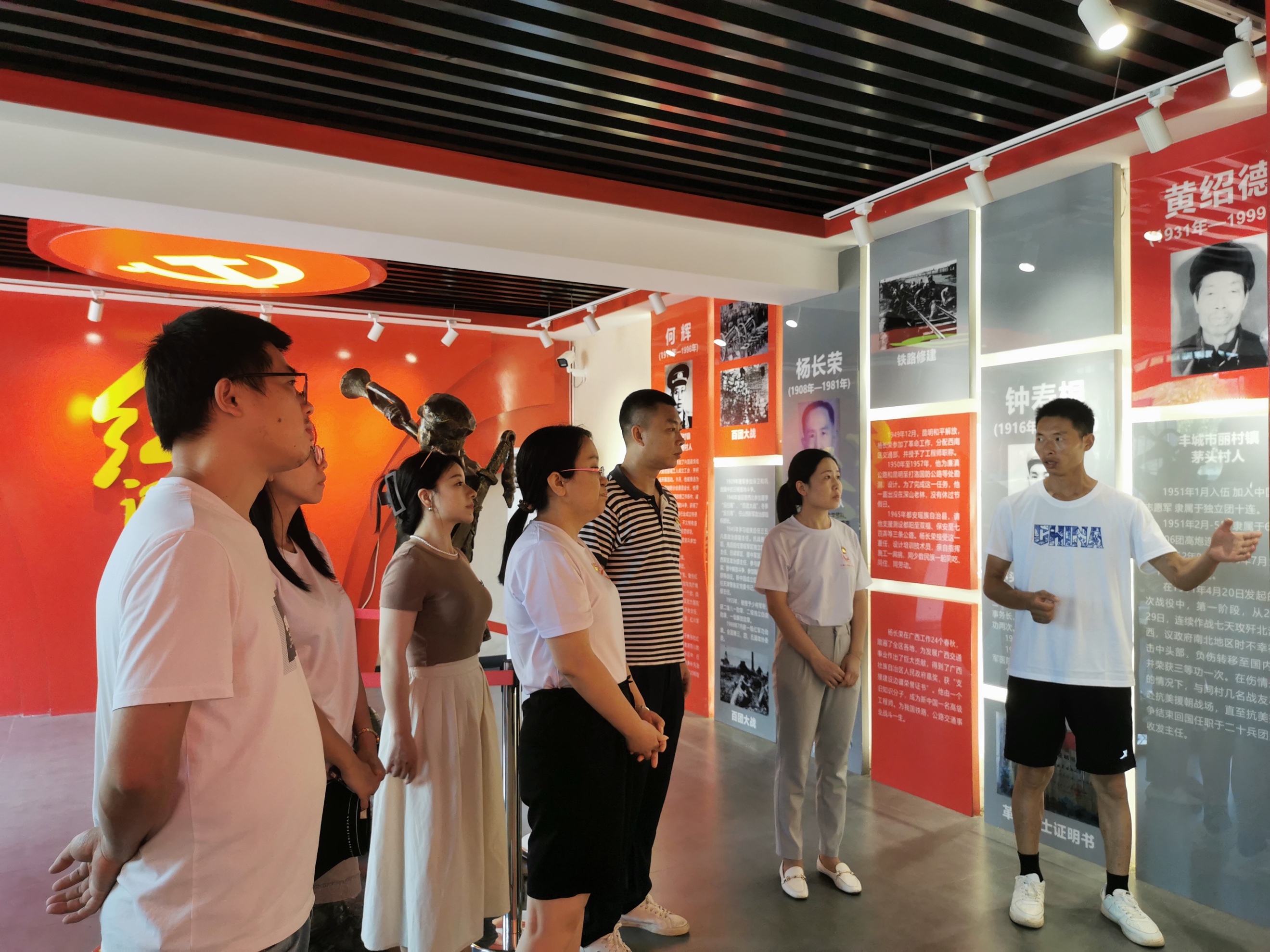 红色记忆展馆通过一件件老物件、一段段红色故事,让沉睡在历史中的红色基因得以传承。从“丰城四将军”之一何辉到在抗美援朝为国捐躯的烈士钟寿根和为中国铁路、公路交通事业奋斗一生的高级工程师杨长荣,从长征精神到爱国精神、奉献精神等,教师党员怀着崇敬的心情,聆听了丽村籍革命先烈的英勇事迹,进一步感受了战争之艰辛,和平幸福生活的来之不易,激励教师党员缅怀革命烈士,对美好生活常怀感恩,奋勇向前,为祖国美好未来而奋斗,为实现中华民族伟大复兴而奋斗。