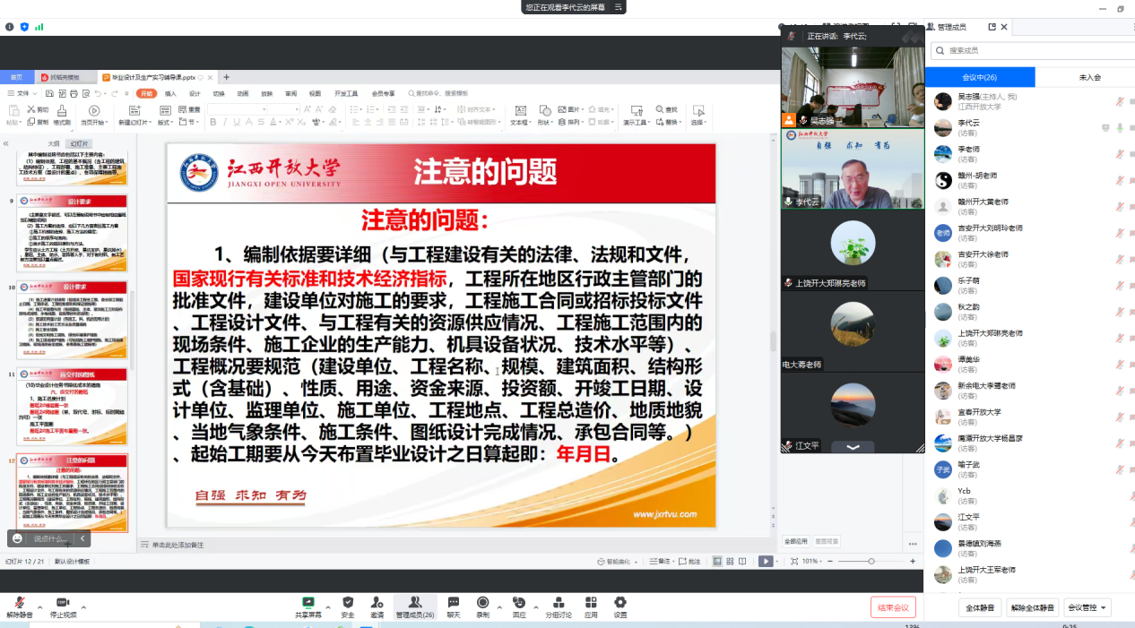 为推进学习贯彻习近平新时代中国特色社会主义思想主题教育走深走实,加强全省系统建筑类与农科类专业建设,深化教学改革,提升人才培养质量,促进系统交流、形成办学合力,629日,城乡发展学院召开全省开放教育系统建筑类与农科类专业教学工作研讨会。省校、市级开大建筑类与农科类各专业负责人、相关课程网络教学团队成员、教务教学管理人员40余人参会,会议由城乡发展学院院长李汉平主持。