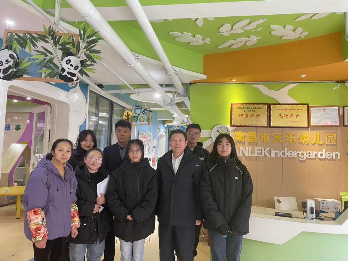 在南昌市天乐幼儿园,李汉平一行人受到了园长和老师们的热情接待。学生讲到,在幼儿园工作要具备耐心、爱心、责任心。李汉平表示赞扬与肯定,并强调万事开头难,坚持下来就是成功。梁爽询问了有关该幼儿园后续的招聘问题,表达了学院非常重视与幼儿园合作的态度。随后,他们来到了爱丁堡天域幼儿园。李汉平对幼儿园的教育教学工作给予了高度评价,并表示将积极寻求与幼儿园深度合作。