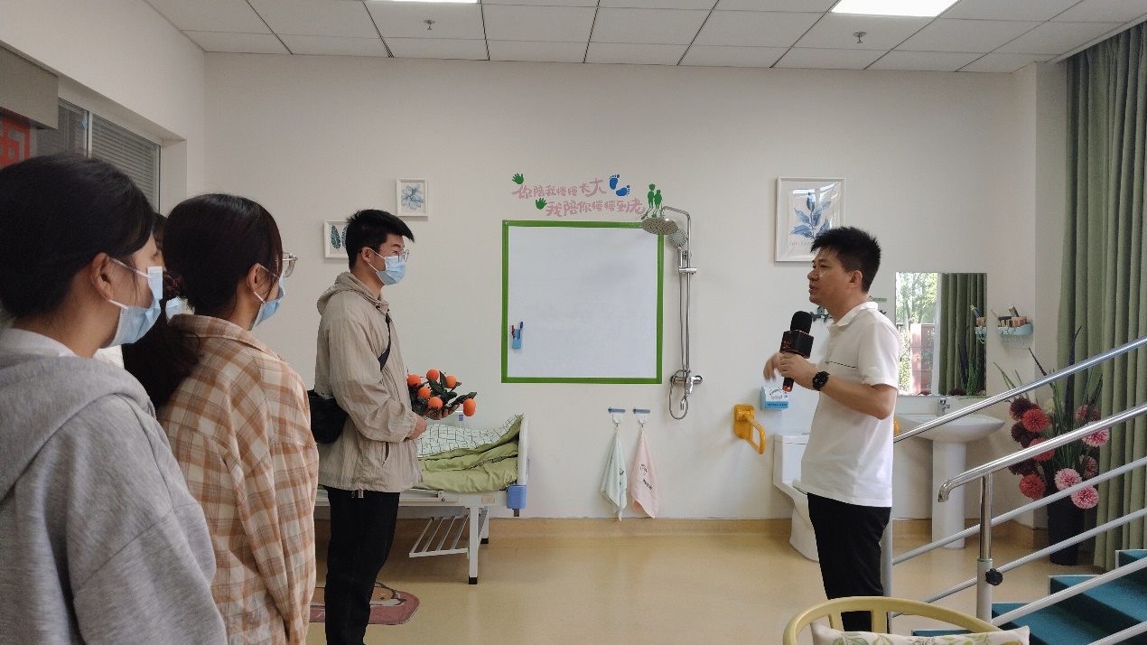 在西湖区福利院院长助理周克的带领下,学生实地参观了餐饮中心、老年人能力评估中心、消防总控室、医务室、文化娱乐中心和老年人住养区等地,学习了福利院在老年护理方面的管理模式和实践经验。