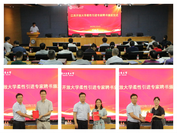 同日,开云在线登录入口(China)官方网站(江西工程职业学院)柔性引进上海第二工业大学专家聘书颁发仪式举行,校党委副书记、校长黄平槐为上海第二工业大学计算机与信息工程学院的杜奕、李丽萍、马闯3位专家颁发聘书并讲话。他指出,学校高度重视与上海第二工业大学的校校合作,本次柔性引进3位专家,就是学校贯彻落实江西省引进职业教育优质资源合作项目,加快推进与上海第二工业大学开展实质性校校合作的重要举措。希望在3位专家的帮助和指导下,进一步提升学校相关专业建设水平,共同推进我校职业教育高质量发展。