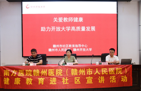 为实施积极应对人口老龄化国家战略,推动健康赣州建设,宣传普及老年健康政策和科学知识,近日,由赣州市社区教育指导中心主办,赣州老年开放大学携手南方医院赣州医院(赣州市人民医院)、赖家围社区居委会等共同承办的健康宣讲和义诊活动在我校举行。校党委委员、副校长卢旗英出席活动并讲话。