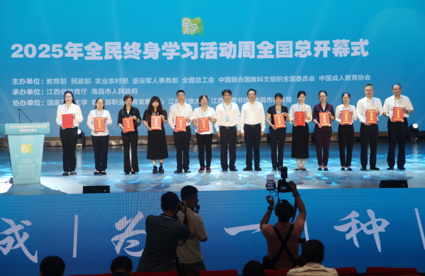 5月8日,2025年全民终身学习活动周在江西省南昌市启动,将推动“一周一省、错峰开展、全年贯穿”。教育部党组成员、副部长吴岩,江西省人民政府党组成员、副省长孙洪山出席活动。我校党委书记贺瑞虎受邀出席开幕式并为省级“百姓学习之星”“终身学习品牌项目”宣传推介代表颁发证书。