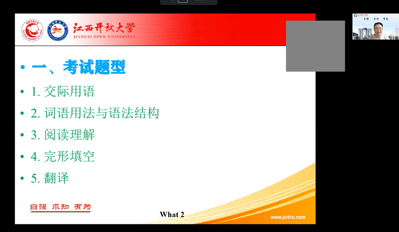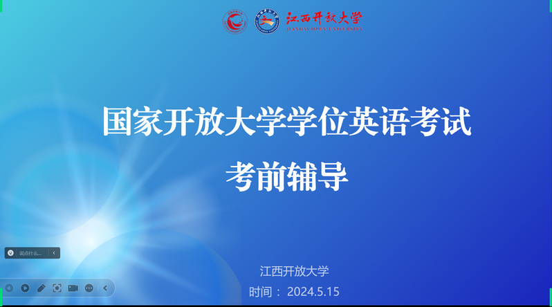 5月18日,2024年春季学期国家开放大学学士学位英语考试即将开考。为助力考生顺利通过考试,机关党委五支部、教务处积极谋划,邀请《学位英语》教学团队负责人胡江萍教授于5月15日倾情推出《学位英语》考前线上辅导课。