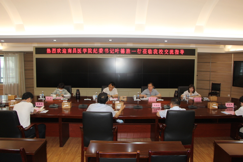 王水平代表学校纪委对叶德胜一行表示欢迎,并介绍了学校概况和纪检监察工作总体情况。叶德胜介绍了南昌医学院纪检监察工作情况,表示两校具有很多共同点和契合点,希望今后加强两校纪检监察工作的沟通交流,共同推动两校纪检监察工作取得新进步。