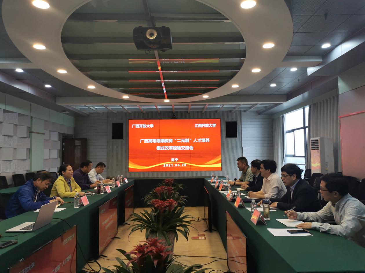 4月20日,由学校教务处处长曾宪宁率队,发展规划处、招生工作处、理工学部、继续教育学院相关负责人组成的考察组,赴广西开放大学就高等继续教育“二元制”人才培养模式改革进行深入考察调研。