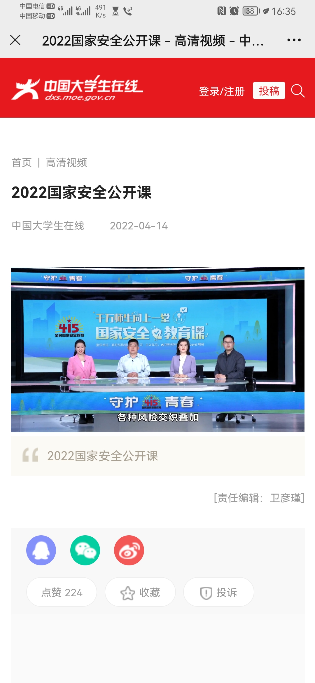 广大师生通过中国大学生在线视频号、快手、B站等直播平台及中国大学生在线官网收看了“千万师生同上一堂国家安全教育课”主题公开课。