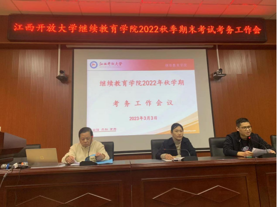 为进一步严肃考风考纪,做好2022年秋季学期期末纸质考试组织工作,3月3日下午,学院在西湖校区召开2022秋季期末考试考务工作会,副院长倪涛以及全体考务工作人员及监考教师共计100余人参加了会议,会议由教务科长何伊斐主持。
