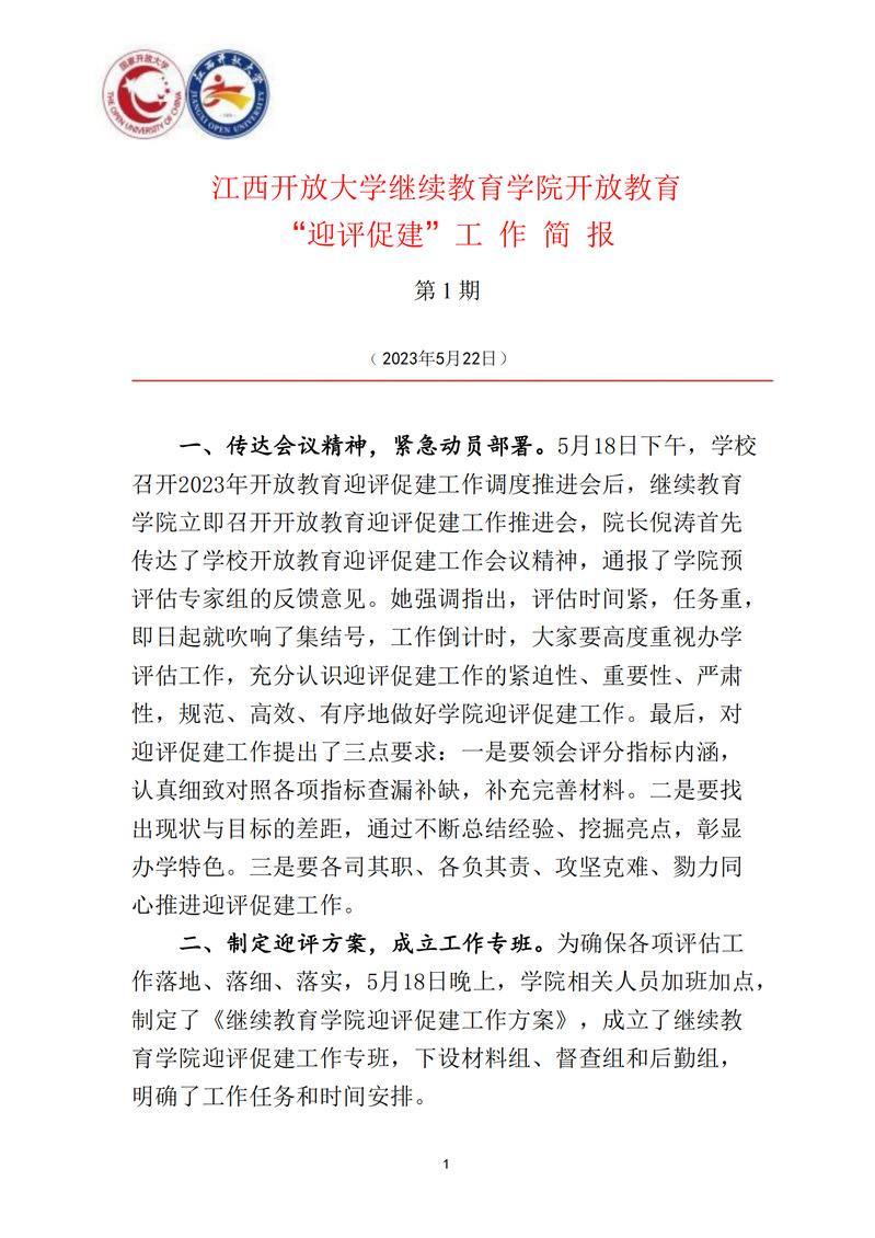 继续教育学院开放教育 “迎评促建”工作简报第1期