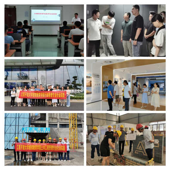 为贯彻落实三全育人理念,强化实践育人环节,进一步培养学生分析问题和解决问题的能力、增强学生创新意识和实践能力,6月21日-6月26日,学院精心策划,结合成人学生专业学习特点,组织开放教育计算机科学与技术、行政管理、土木工程管理专业学生、指导教师、班主任分别在学校计算机机房、南昌市规划展示中心、江西新蓝领建工技术服务有限公司实践教学基地开展专业社会实践教学活动。