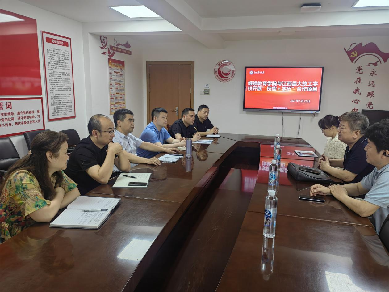 为整体推进学校与江西省人社厅联合实施的“技能+学历”复合型技能人才培养工作,提前谋划开放教育服务技校生工程。5月22日,学院与江西昌大技工学校召开项目推进会。继续教育学院党总支书记、副院长但小澍主持会议。学校终身学习服务中心黄林凯、招生就业处叶方良以及学院相关科室负责人参加会议。