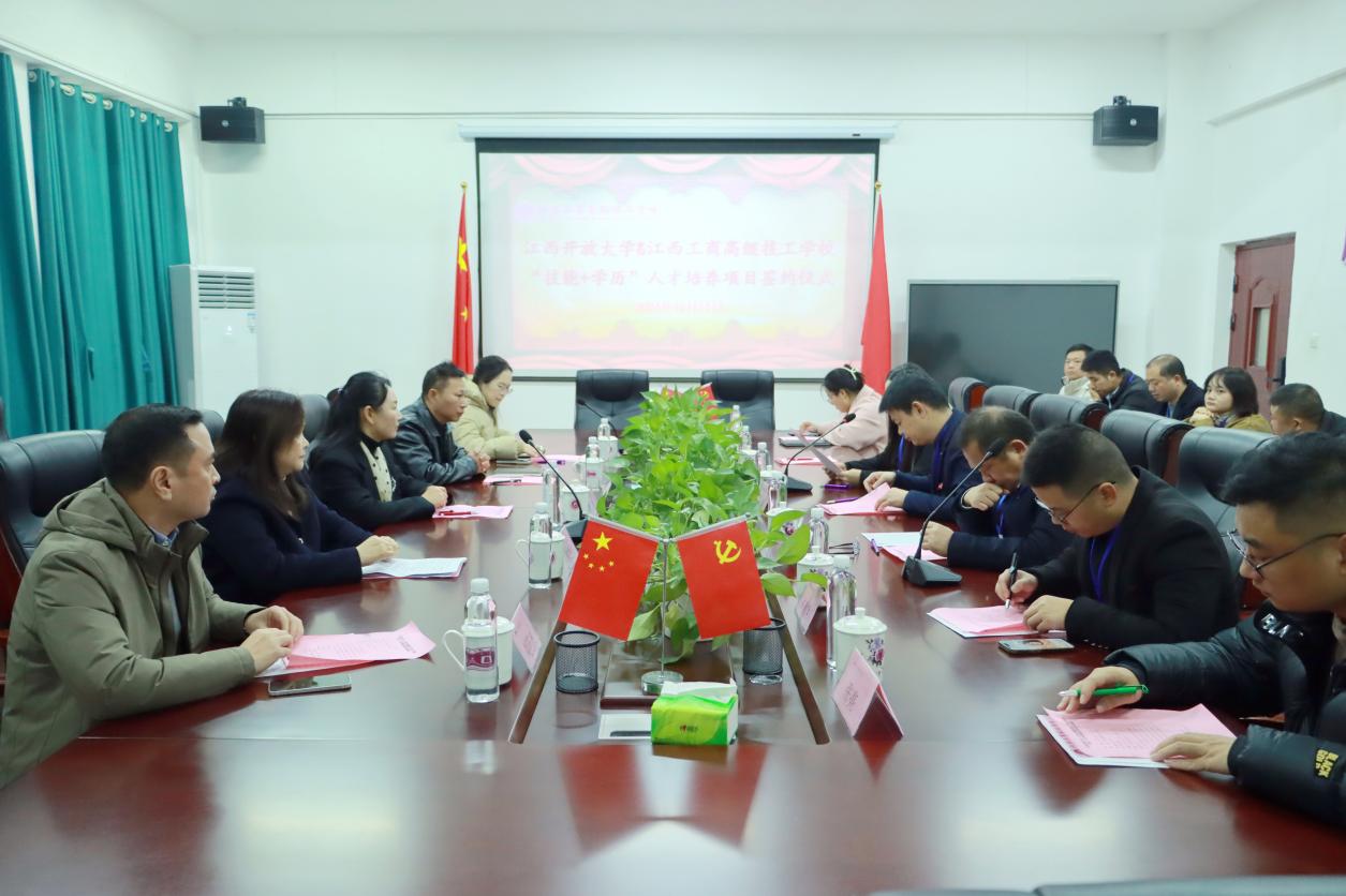 为促进开放教育高质量创新发展,推动“技能+学历”人才培养模式项目落地生根。12月11日,继续教育学院与江西工商高级技工学校举行“技能+学历”复合型技能人才培养签约仪式,仪式在江西工商高级技工学校举行,学院院长倪涛、副院长李龙光,江西工商高级技工学校校长胡国辉、副校长张小琴,双方相关科室负责人参加签约仪式。