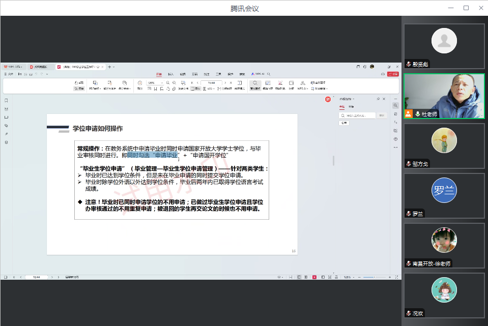 为进一步加强学位管理工作,确保学位授予的规范性、有效性,12月24日上午,学院通过线上的方式举办了2024年秋季学位管理工作专题培训,学院本科班主任和所辖各学习中心负责学位管理工作的人员参加了培训。此次培训会旨在落实校教务处学位管理工作培训会议的要求,提高学院学位管理工作水平。