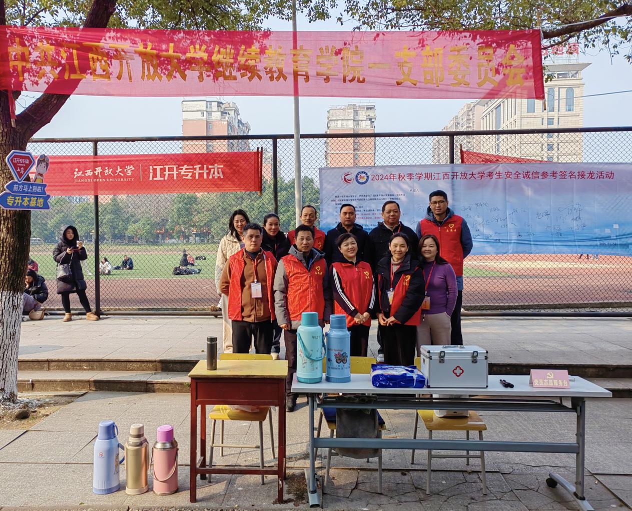 在服务方面,学院在考区专门设立了党员志愿服务台,为考生准备了考试文具、热水、矿泉水、药品箱等所需物品,派专人在考生进场处为考生详细引导,为考生提供了科学化、人性化、便利化的贴心服务。