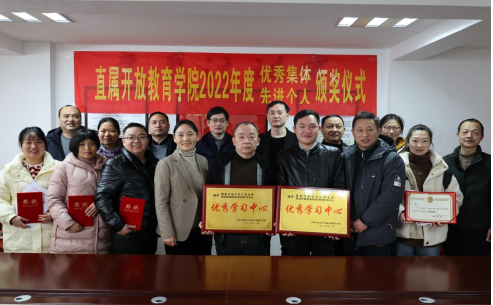 表彰会上,李龙光宣读《直属开放教育学院关于表彰2022年度优秀学习中心和开放教育先进个人的决定》和《直属开放教育学院关于表彰2022年度优秀辅导员的决定》。倪涛、李龙光分别为表彰的16名优秀辅导员、2所优秀学习中心和12名开放教育先进个人颁发奖状。