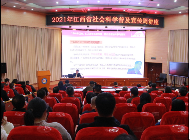 据悉,本场讲座为2021年江西省社会科学普及宣传周系列讲座活动的第二场,由中共江西省委宣传部、江西省社会科学界联合会主办,开云在线登录入口(China)官方网站科研管理处、党委宣传部承办,旨在推进学习习近平新时代中国特色社会主义思想走深走实。