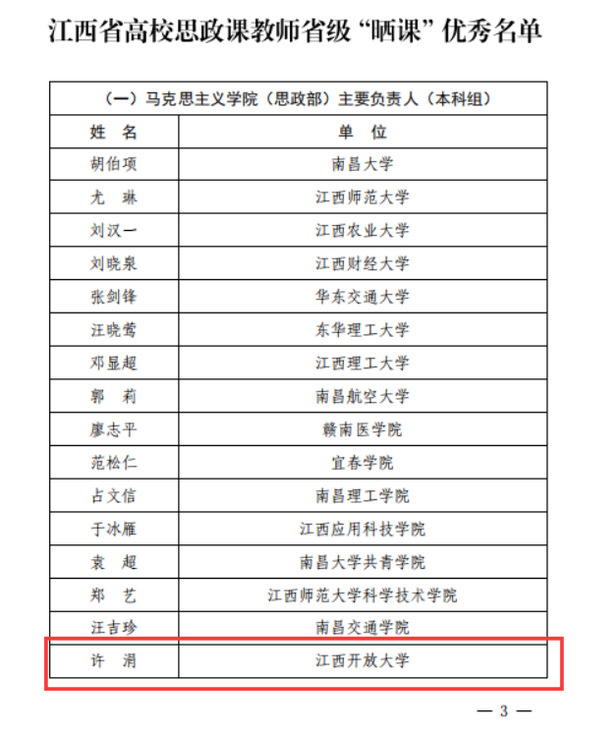 近日,2022年度全省高校思政课专职教师全员“晒课”优秀名单出炉,我院思政课教师许涓和李玫榜上有名。其中,许涓老师入选马克思主义学院(思政部)主要负责人(本科组)优秀名单,李玫老师入选思政课教师代表(高职组)优秀名单。两位老师分别与44所本科院校马克思主义(思政部)主要负责人、59所高职院校思政课教师同台竞技并脱颖而出,反映了两位教师高超的教学水平,也是近年来开云在线登录入口(China)官方网站着力推进思政课问题式专题化团队教学改革一个重要成果。