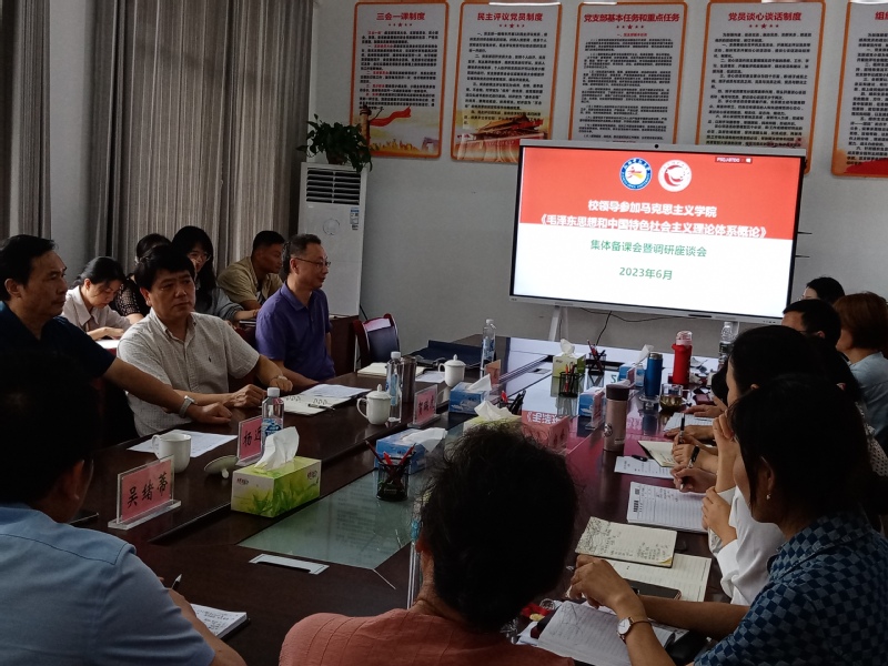 6月8日下午,校党委书记贺瑞虎参加我院“毛泽东思想和中国特色社会主义理论体系概论”课集体备课会,与思政课教师一起备课。校党委委员、宣传部部长张明、校总督导杨近铬一同参加。备课会由学院院长汪红亮主持。