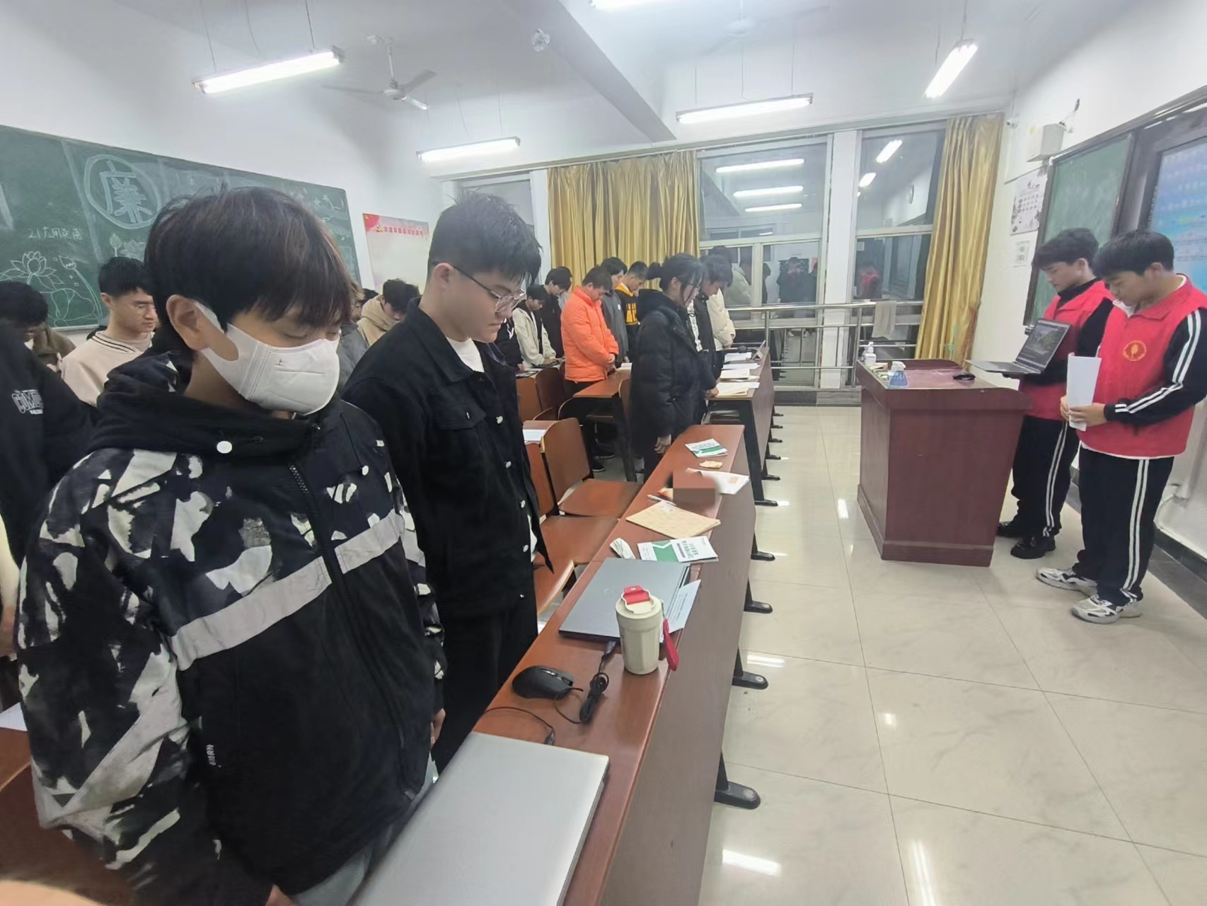 活动现场,弘扬社成员带领同学们跟着防空警报,默哀三分钟。之后组织同学们观看南京大屠杀宣传教育视频,1937年的今天,侵华日军攻陷南京,30多万中国军民惨遭杀戮,山河破碎、风雨飘摇。那一组触目惊心的数字,深深震撼着大家的心灵,心情久久不能平静!国行公祭,是哀悼更是警醒,它警示我们历史悲剧决不能重演,它激励我们以史为鉴、开创未来,踔厉奋发、勇毅前行!