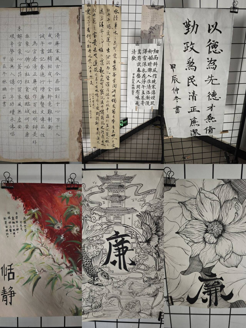 创书画,弘扬又廉又洁文化。学院开展学生廉洁文化主题书法、绘画作品展。墨香扬正气,丹青绘清廉。学院擅长书法、绘画的学生踊跃参加,通过丹青、书法创作,表达对廉洁文化的理解。书画展示活动发挥了廉洁文化教育引导激励浸润作用,培养了青年学生廉洁奉公、诚信守法意识,也营造了“清风马院”建设的浓厚文化氛围。