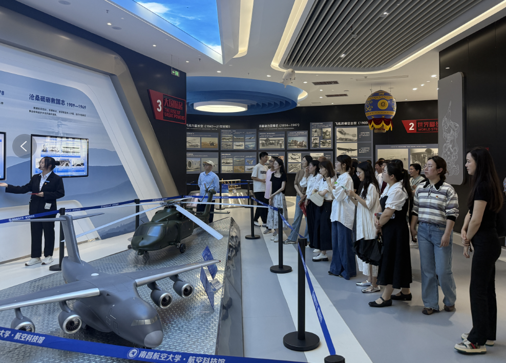 在该校航空科技馆,全体党员了解了世界航空发展史,以及我国航空工业的艰难发展历程,特别是“强5”飞机研制的曲折过程等,被航空文化的魅力深深吸引,也被航天精神深深感染。航空报国的前辈们无私奉献精神,让在场的每一位同志为之动容。正是因为一代一代航天人凭着坚定的信念,不畏艰难,勇攀高峰,才造就了新中国航空事业的辉煌。通过参观学习,大家的爱党爱国热情进一步被激发。