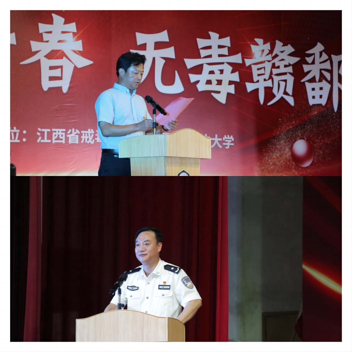 在启动仪式环节,学校党委委员、党政办主任兼统战部长罗军涛致辞,他表示加强禁毒宣传教育,保护青年健康成长,功在当下、利在千秋。江西省戒毒局党委委员、政治部主任常民在讲话中指出戒毒工作,事关国家安危,希望同学们牢固树立“珍爱生命、远离毒品”的理念。随后,戒毒管理局领导转交服务团团旗,江西‘映山红’戒毒服务团宣告正式成立。