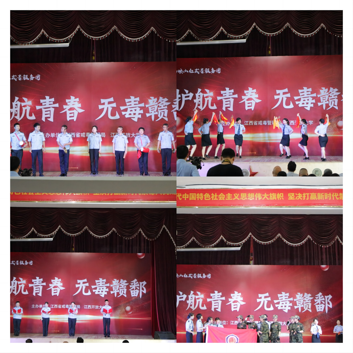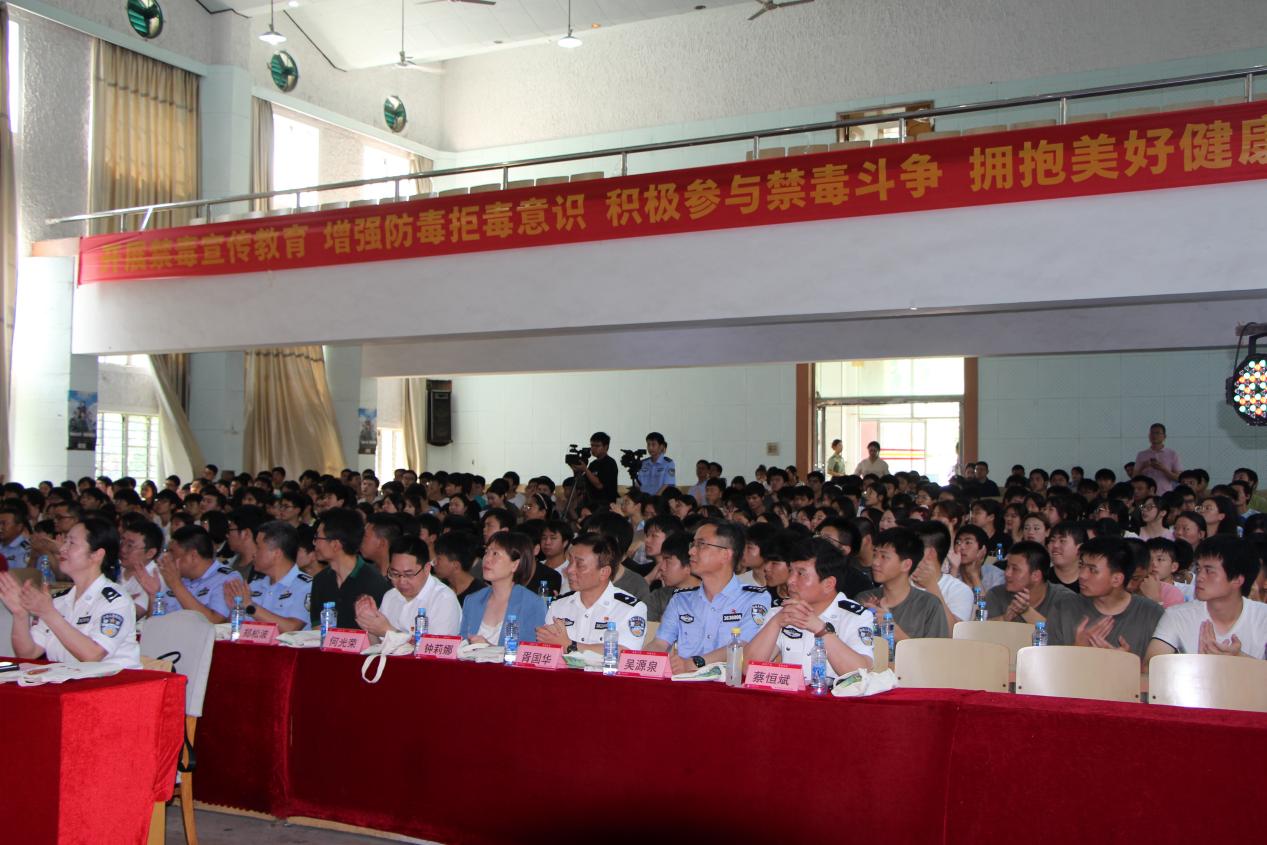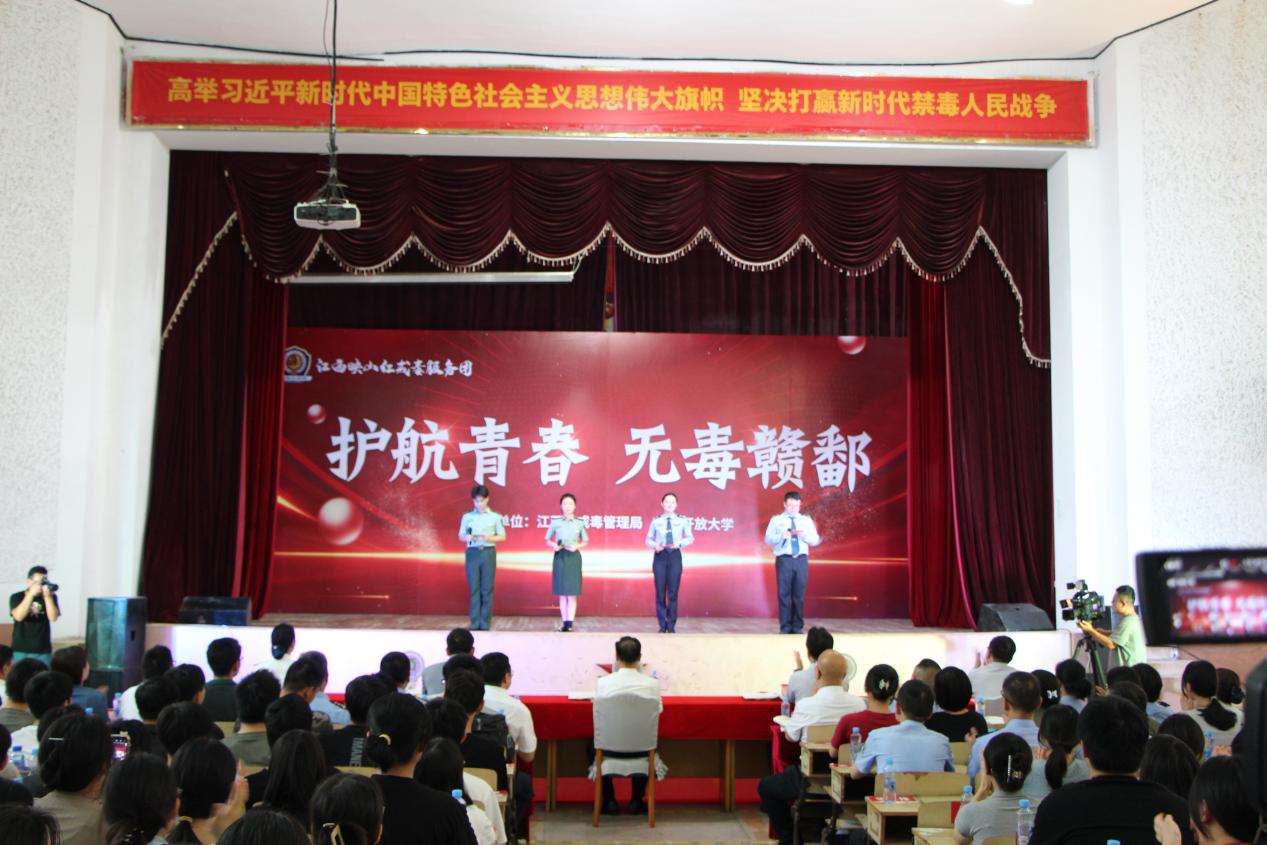 为确保学习贯彻习近平新时代中国特色社会主义思想主题教育取得实效走在前列,进一步践行为民服务宗旨,延伸戒治服务触角,促进全社会形成浓厚禁毒氛围,6月19日下午,由开云在线登录入口(China)官方网站、江西省戒毒管理局联合举办的江西“映山红”戒毒服务团成立仪式暨“护航青春 无毒赣鄱”校园行专场禁毒宣传活动,在我校青云谱校区人文与健康学院顺利举行。学院党委书记梅甜甜,党委副书记、纪委书记王松华、团学科负责人与600余名师生出席活动。