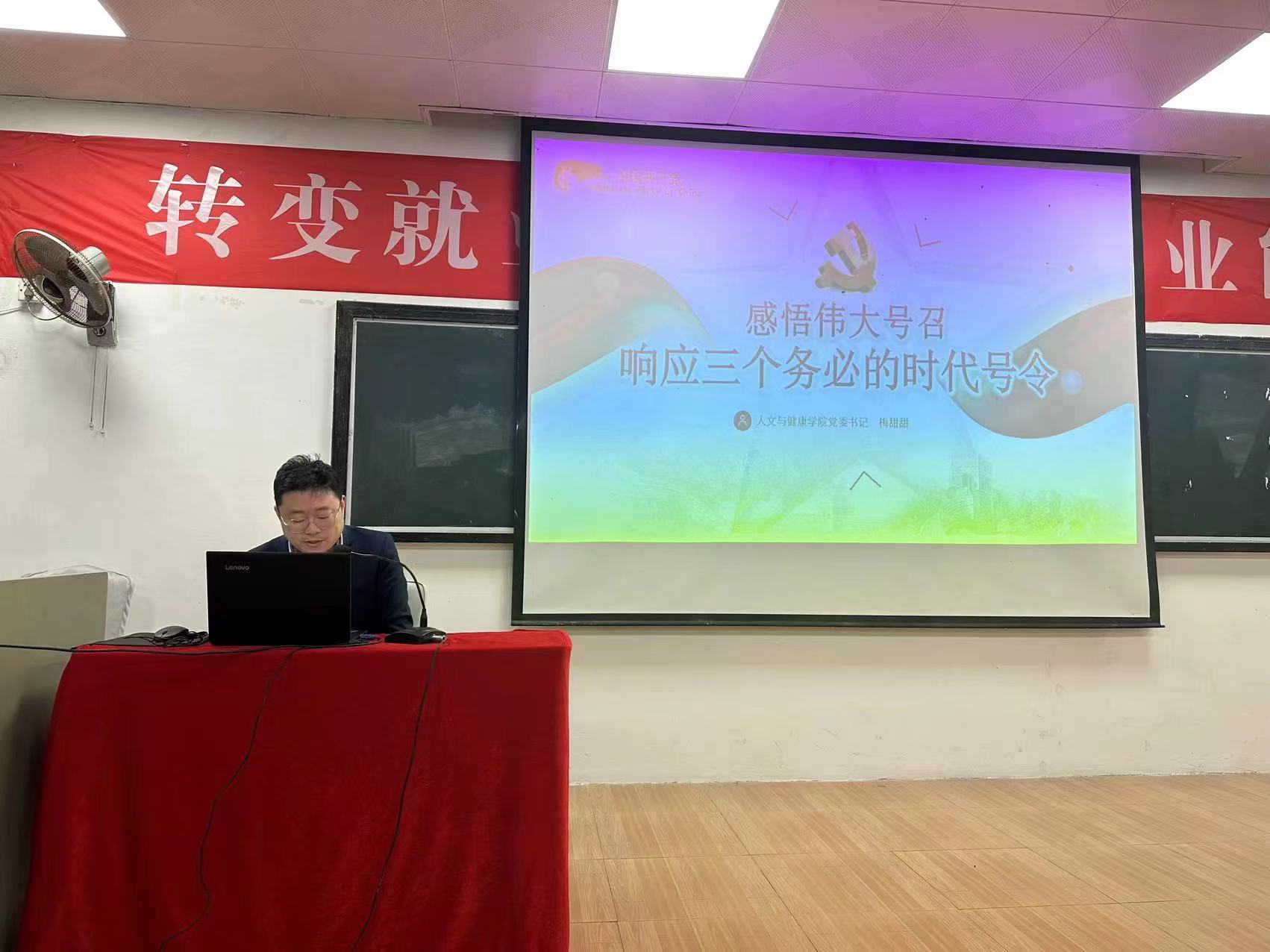 1117日下午16学院党委书记梅甜甜1101教室以“感悟伟大号召,响应三个务必时代号令”为主题为青云谱校区的入党积极分子党课。他从牢记殷切嘱托,用热血青春奋进新征程,建功新时代提升理论修养,用党的理论创新成果长才干,解决新问题;不负深情厚望,用永不退缩的干劲冲锋在前,干出新成绩;响应伟大号召,用勤奋务实的作风破解难题,展现新风采等四个部分阐述了作为青年学子如何坚定理想信念、加强品德修养、增长知识见识、培养奋斗精神、增强综合素质进一步凝聚了合力、鼓舞了士气,也更加树牢了爱国主义情怀,刻苦学习、积极奋斗的信心和决心。