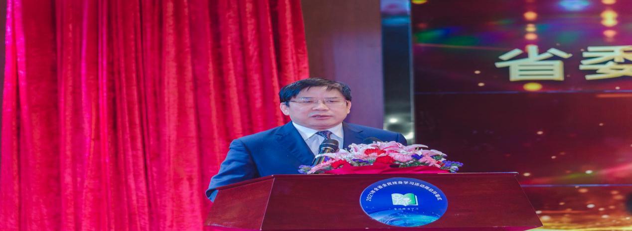 为学习贯彻习近平总书记关于教育的重要论述和视察江西重要讲话精神,推动实现“构建服务全民终身学习的教育体系”“建设高质量教育体系”“建设学习型社会”“建成教育强国”等奋斗目标,12月17日,2021年江西省全民终身学习活动周总开幕式在萍乡市举行。省委副书记、代省长叶建春对推进全省全民终身学习提出要求。省委教育工委副书记、省教育厅厅长郭杰忠宣布2021年江西省全民终身学习活动周启动并讲话,萍乡市委副书记、市长刘烁致辞,校党委副书记、校长黄平槐宣读2021年全国及全省“百姓学习之星”“终身学习品牌项目”表彰决定,省委教育工委委员、省教育厅副厅长裴鸿卫主持会议。