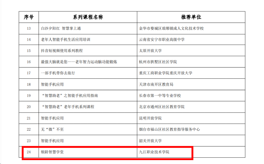 近日,从《教育部办公厅关于推介2023年县域社区学习中心典型案例和社区教育品牌课程的通知》(教职成函〔2024〕8号)获悉:2023年县域品牌社区学习中心典型案例和品牌课程已完成了评审和公示,我省组织申报的东湖区社区教育指导中心典型案例(南昌市东湖区社区教育指导中心)入选县(市、区)社区教育学院样板案例;《银龄智慧学堂》(九江职业技术学院)、《亲子共读,情悦你我》(江西旅游商贸职业学院)、《高中生心理特点及家校合作》(江西省安义中学)、《成人健康教育课》(南昌市经济技术开发区蛟桥街道丽景苑社区)、《八段锦》(江西省安义县职业技术学校)5门课程入选县域社区教育品牌课程。