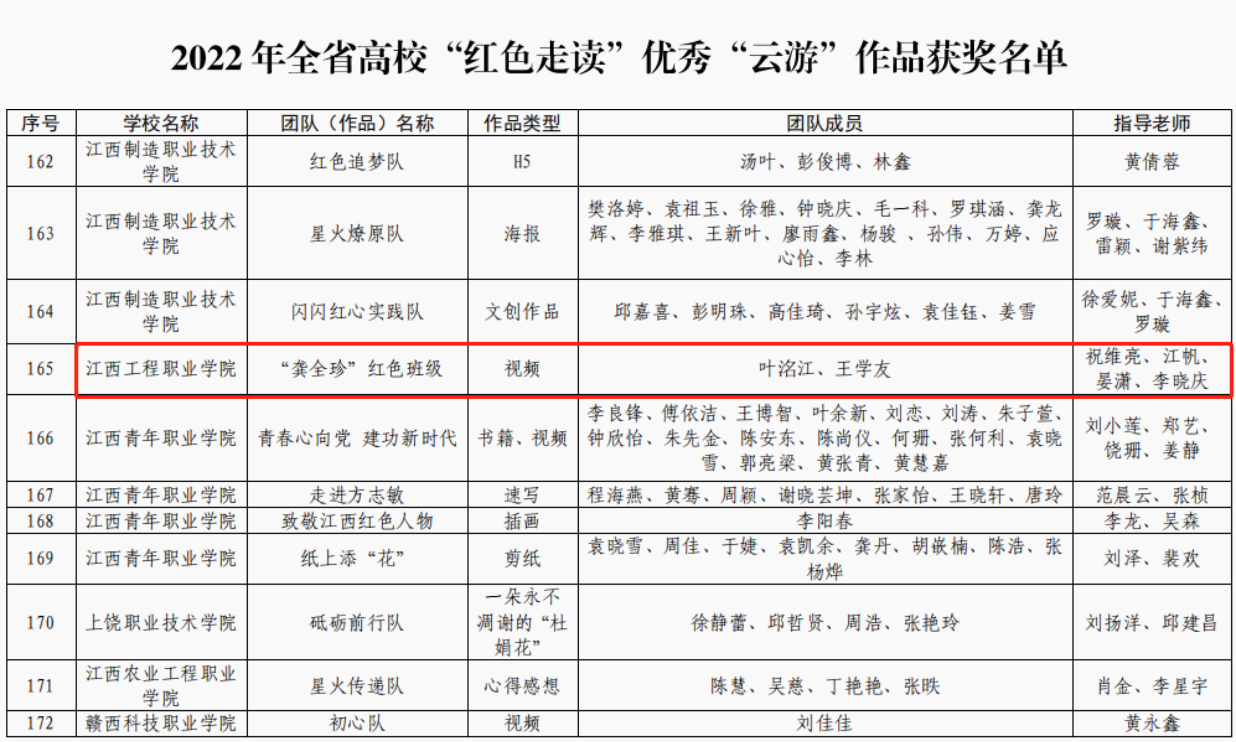 近日,省委教育工委、省教育厅公布了2022年全省高校“红色走读”活动获奖情况,数字经济学院获得优异成绩。其中,在“红色走读”系列活动中,实地走读优秀团队作品荣获三等奖2项,1支队伍作品荣获优秀“云游”作品。